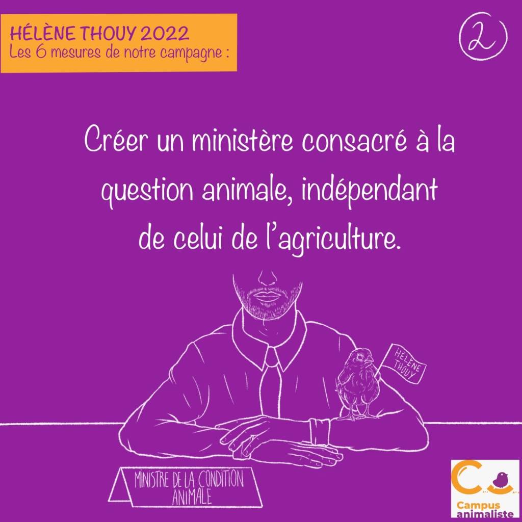 Nous souhaitons adosser à la Constitution une Charte de la protection animale reconnaissant le caractère d’êtres sensibles des animaux, et créer un ministère à la protection animale, totalement indépendant des autres ministères, et disposant de moyens suffisants.